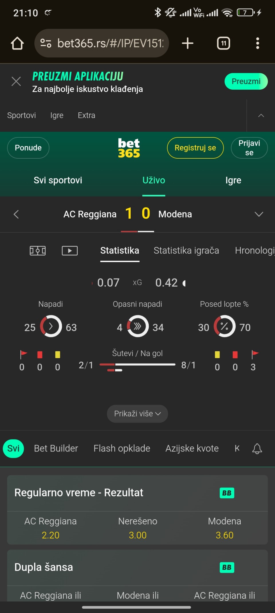 Neko je vec danas pisao za Modenu, imali su dva poslednja puta prelaz u korist domacih. Mislim da bi danas mogli vratiti gostima. Cekam poluvreme da skoci kvota. ☘️✌️