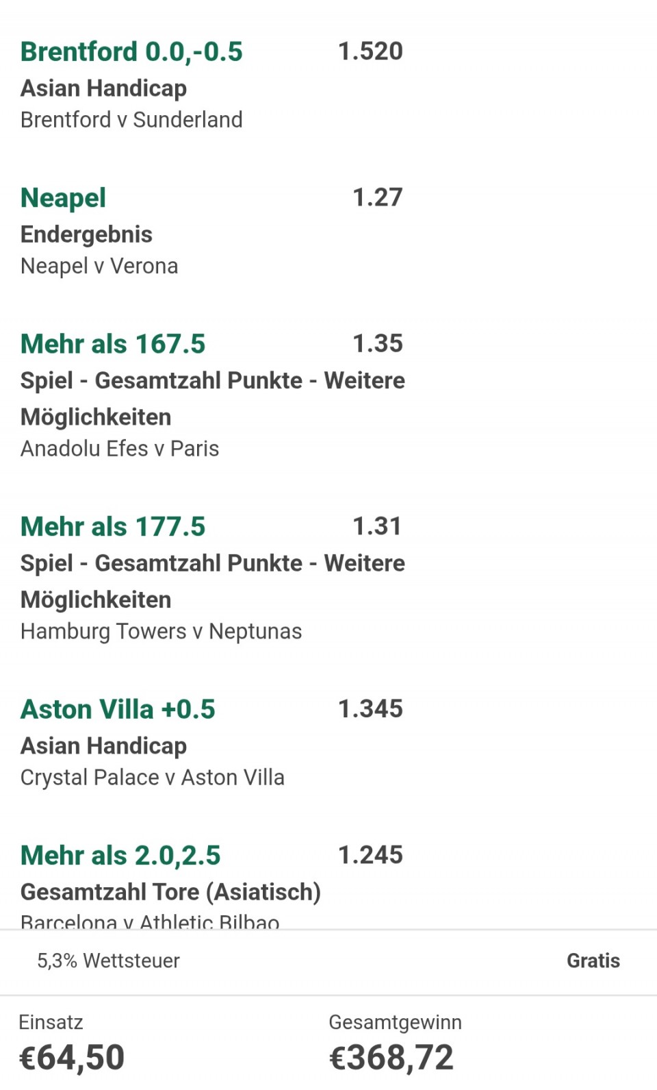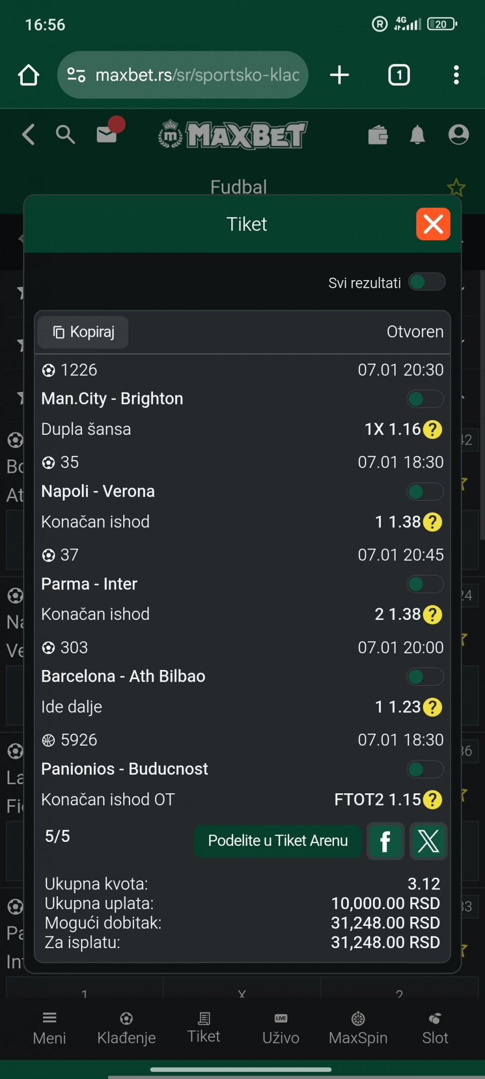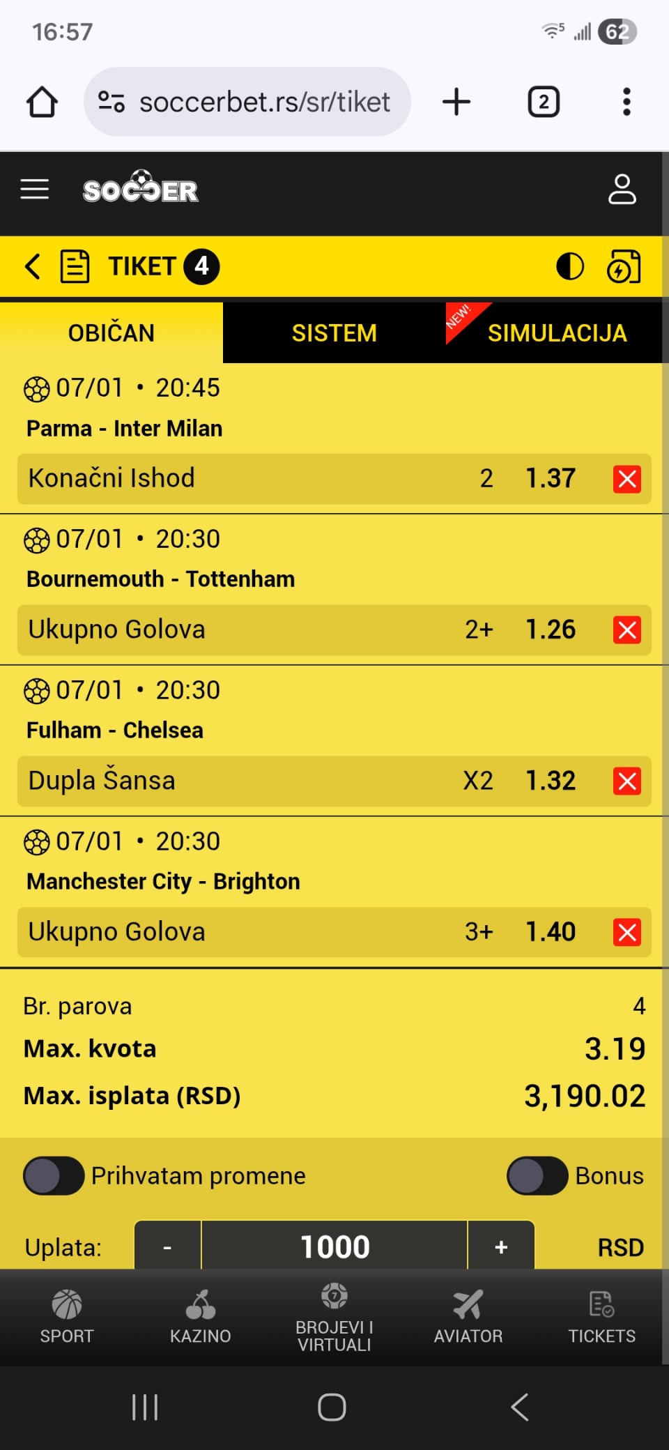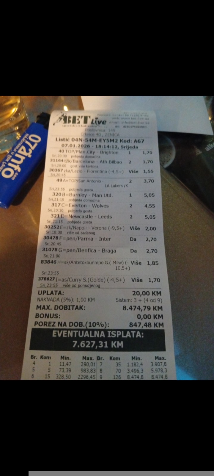 Pojačavam prethodnu uplatu od 7800 sa jos 11600 na ovo. Ova tri domaćina kod kuće imaju jako visok procenat pobede u medjusobnim duelima i očekujem da će jako napadati na pobedu sva tri protivnička tima koja i nisu baš u dobroj formi. Dugo vremena...Pojačavam prethodnu uplatu od 7800 sa jos 11600 na ovo. Ova tri domaćina kod kuće imaju jako visok procenat pobede u medjusobnim duelima i očekujem da će jako napadati na pobedu sva tri protivnička tima koja i nisu baš u dobroj formi. Dugo vremena nisam bio sigurniji u ovakve pobede domaćina. Show more