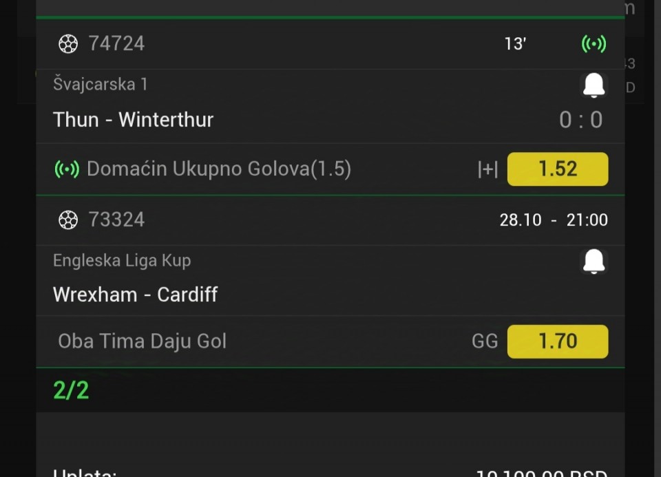 Lepo je krenulo, prvo pa muško što bi se reklo. Za noćas ostavljam još jedan par i to je dosta za današnji dan. Kao što sam i rekao ne jurim ništa, cilj mi je da što više mojih predloga bude dobotno, a to može samo kada se igra nekoliko parova dnevno.