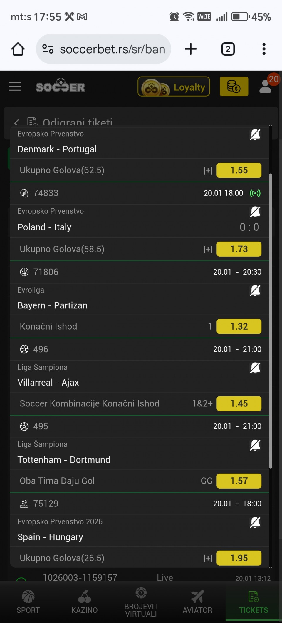 18:00 TOFAS VS ALBA BERLIN PPH2 (+3.5) @1.55 soccer kladionica