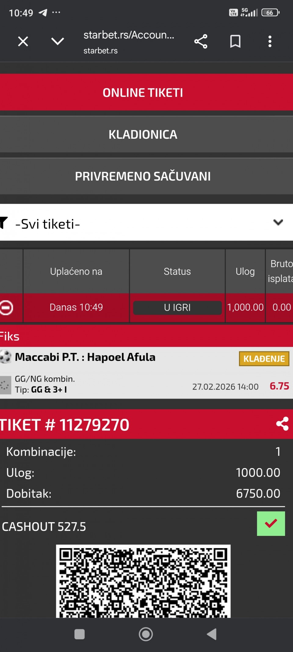 tip: over 2.5 pp (26 minut trenutni rezultat 1:1)