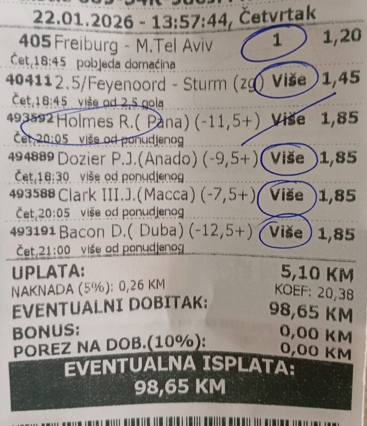 Učinak: 36 poena (10.5 preko margine! 🔥)