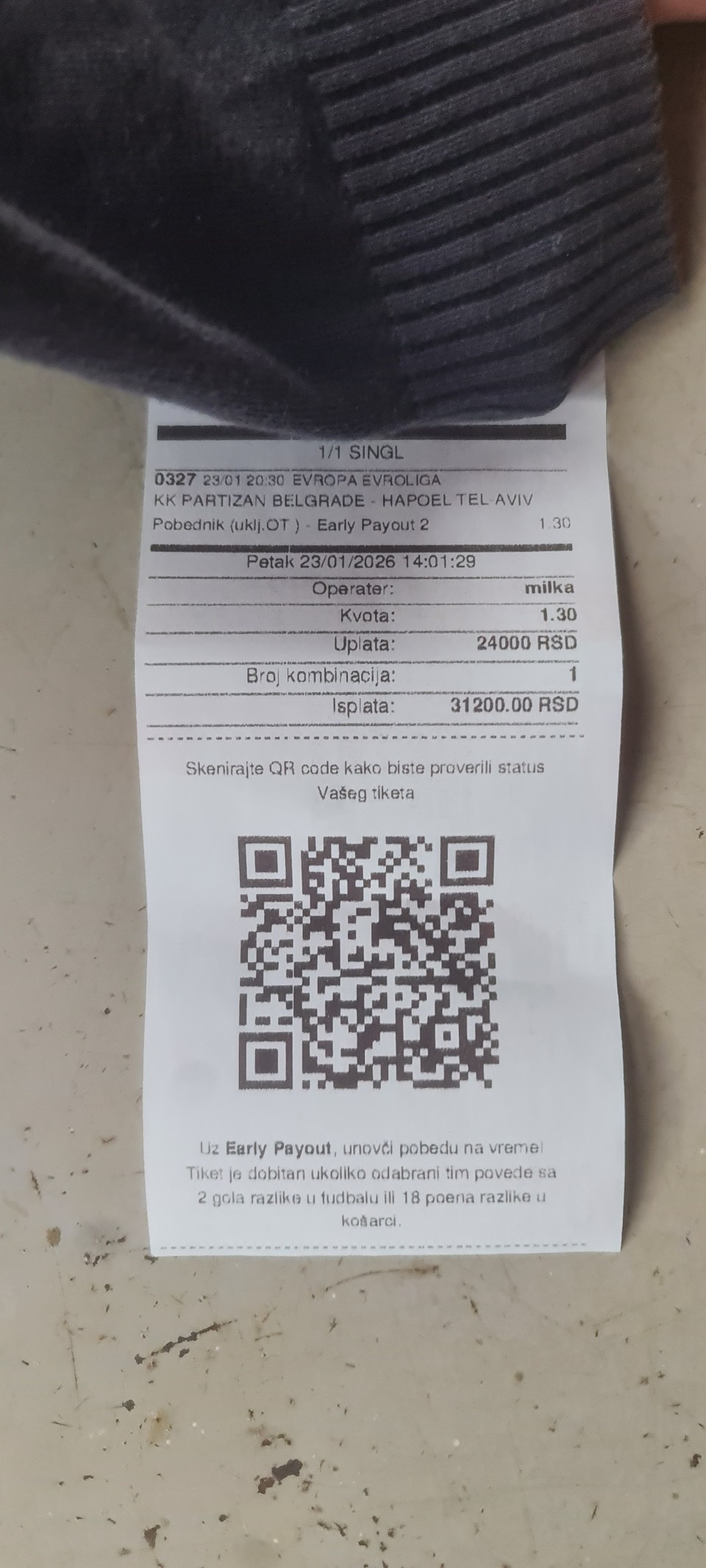 Partizan--Hapoel Tel Aviv Tip 2 kv 1.45
