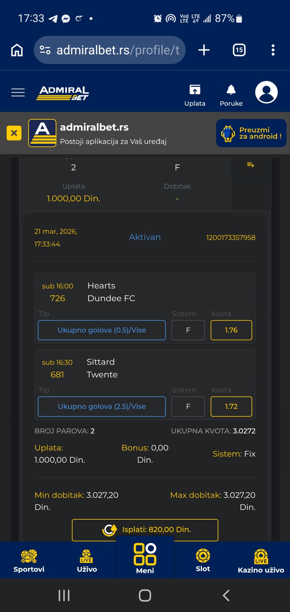 Idemo jako, jutros je jedan prosao, solidna uplata za ovaj svakako ide, pa sa srecom ko isprati. Izvrsena analiza ovih predloga.