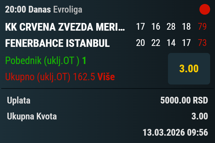 tip: over 3.5 (79 minut trenutni rezultat 1:2)