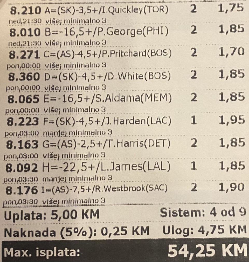 3. CJ McCollum 6.5 S+A + (uzeti do 7.5 ali pazljivije, George je upitan!)