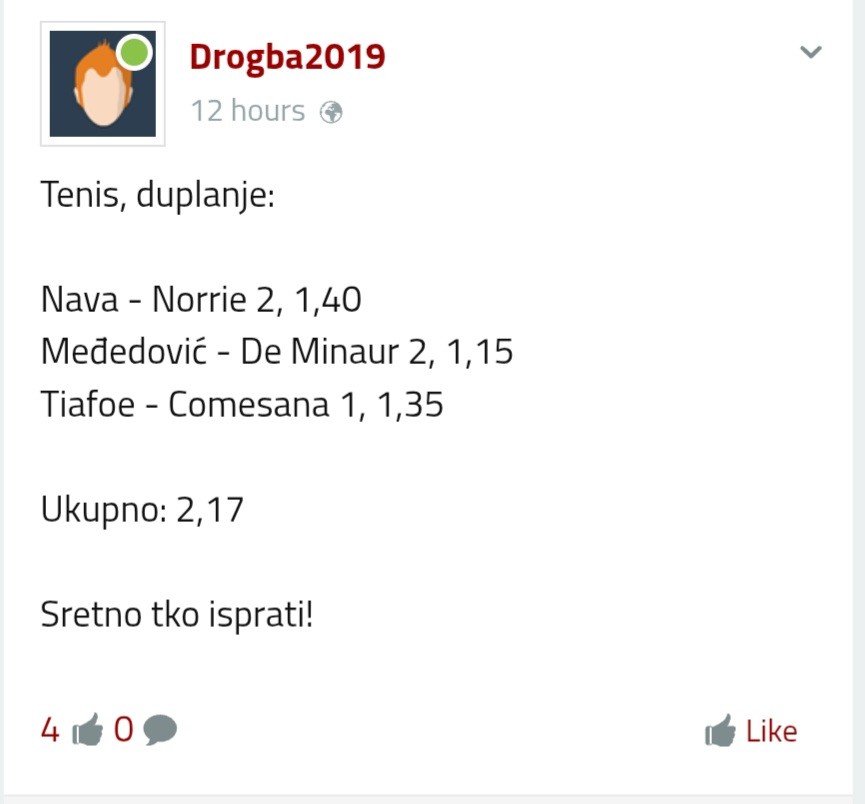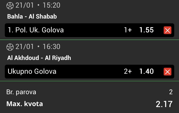 tip: X2 (33 minut trenutni rezultat 2:0)