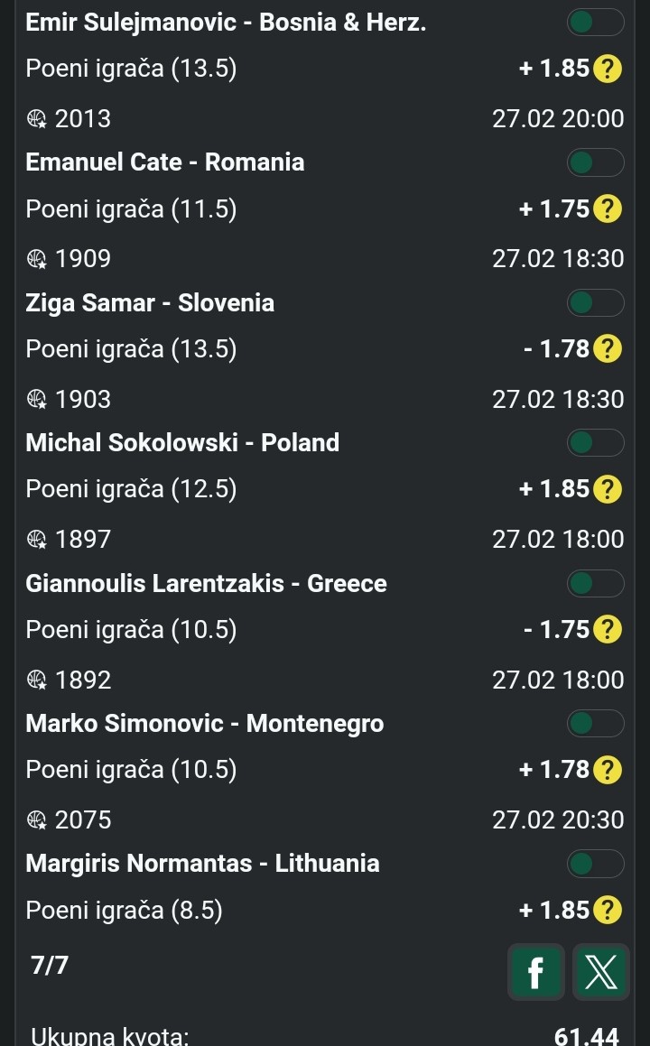 U sastavu sprskog trenera ne vidim igrače sa poenima u...M. Reed (Gruzija) 21.5+, pojedine 20.5+