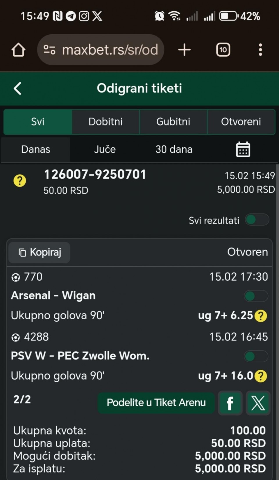 Dobio sam puno poruka u poslednja dva dana kako igram ove tipove koje postavljam, da li sve igram na jednom tiketu, da li double, triple, pa hajde još jednom da napišem da se ne ponavljam svaki dan.