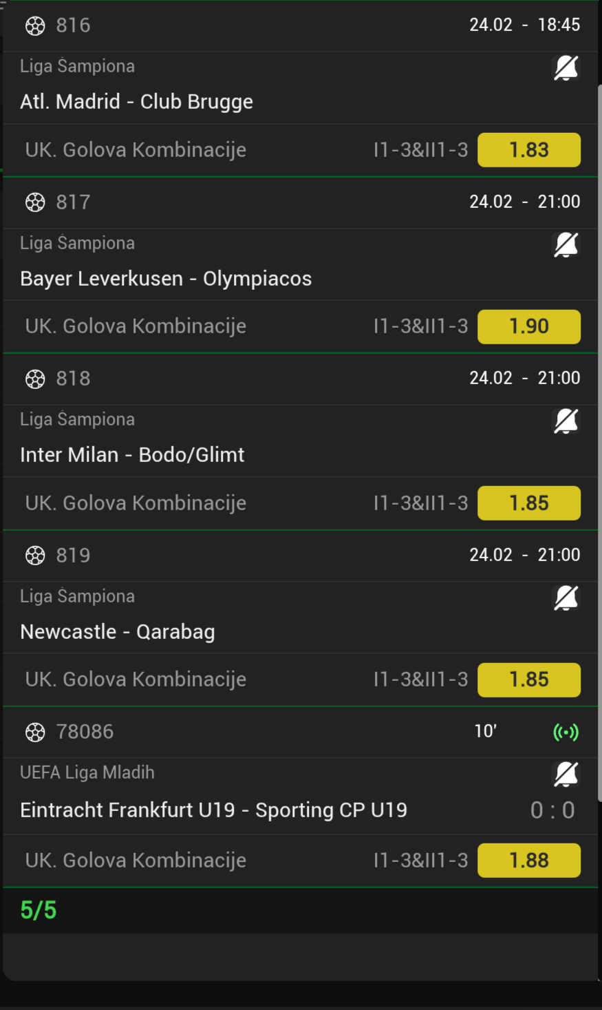 24.02. Kvota: 2.65 → prvi korak