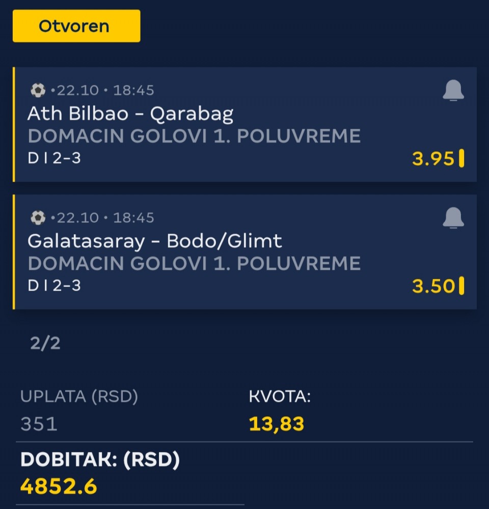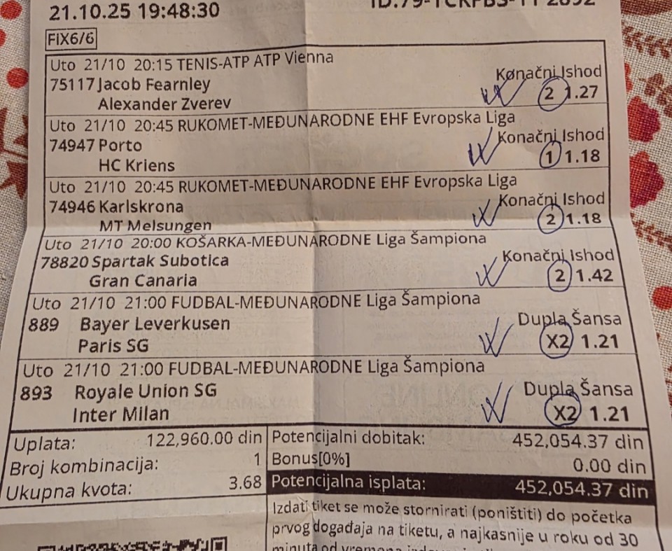 Ne znam da li bi plakao ili se smejao hahaha ...ima li neka dobra duša da mi za sutra sastavi tiket kvote 2 da nešto pogodim ...šta god ovih dana odigram glatko padne tiket 😂🤦♂️ne znam jesam li jedini koji danas centa uzeo nije 🤣