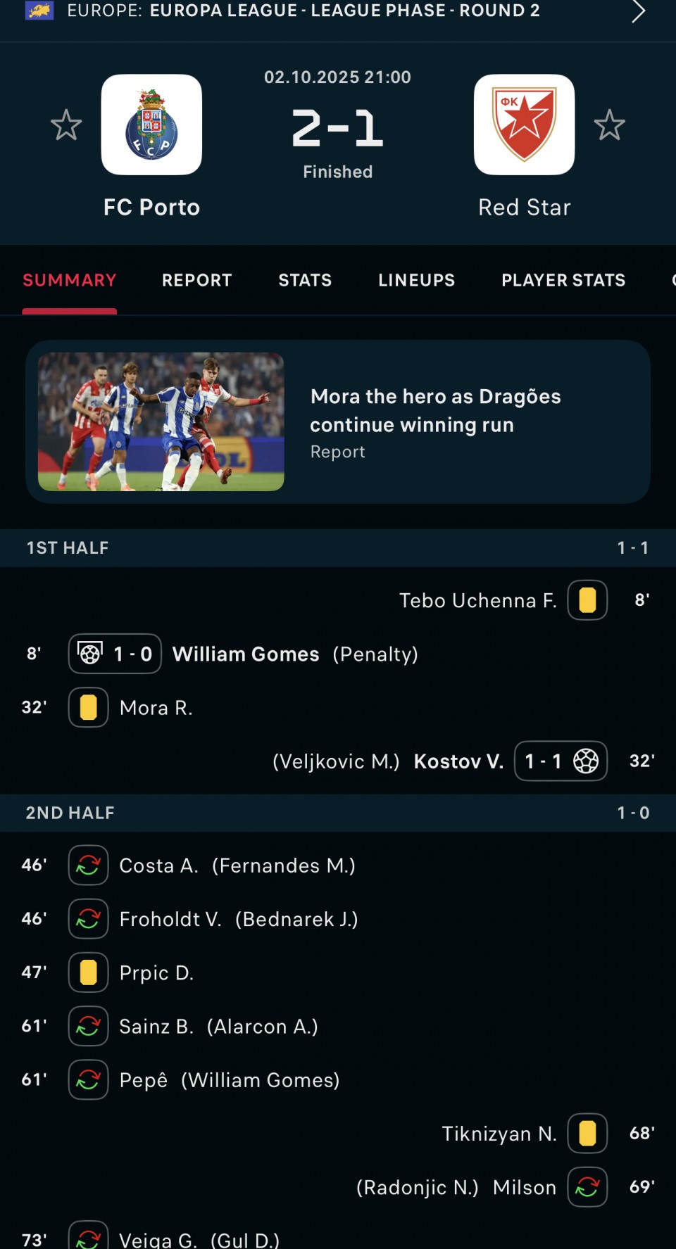 Porto - Crvena zvezda KI 1 (1,55) WIN ✅