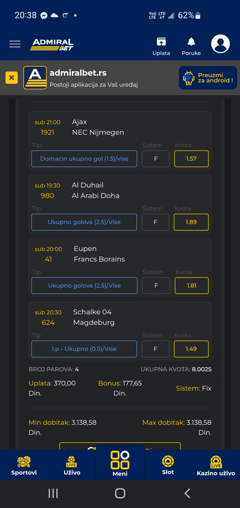 Rotterdam65 Posto je danas sve kontra doslo trebalo bi da ce i ovo.Danas su sve tekme izgleda namestene 21 minutes ago