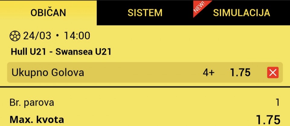 U razvojnoj ligi Engleske Hull dočekuje Svonsi, Hull je podigao formu pobedivši Piterboro na gostovanju (2:3), remiziravši sa Sheffieldom (2:2) i Colchesterom (2:2), kod kuće su dobili Fleetwood (4:1), izgubili od Coventry-ja (2:4), dobili Wigan,...U razvojnoj ligi Engleske Hull dočekuje Svonsi, Hull je podigao formu pobedivši Piterboro na gostovanju (2:3), remiziravši sa Sheffieldom (2:2) i Colchesterom (2:2), kod kuće su dobili Fleetwood (4:1), izgubili od Coventry-ja (2:4), dobili Wigan, izgubili od Wednesdaya i remizirali sa Sheffieldom. Svonsi u dobroj formi 3 pobede na poslednjih 5 mečeva, dobili Cardiff, pa QPR (3:1), izgubili od Colchestera (3:1), remizirali sa Cardiffom i dobili Sheffield Wednesday (5:1), u gostima dobili Milvol (2:5), potom porazi od Colchestera, Charltona (6:0), pobeda nad Cardiffom i poraz od Colchestera (3:1) Dve ekipe sa jako dobrim napadima koje na skoro svakom meču daju 2 gola, ali je odbrana ta koja predstavlja problem, i jedni i drugi primaju skoro po 2 gola, međusobni su uglavnom bili veoma efikasni gde je najčešće Svonsi izlazio kao pobednik, pa očekujem jako dobar meč, mladi vole da se dokazuju i verujem da ćemo videti jednu efikasnu utakmicu sa dosta golova na obe strane, pa ću probati tip 4+ Show more