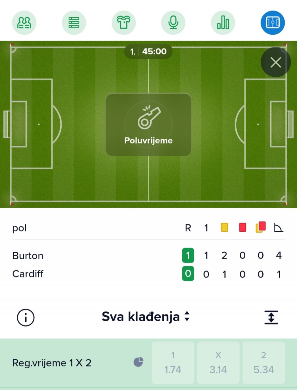 Eh sad kad sam vec dosao do toga da veceras kulturno bi bilo pastetu pojest, idem OLL INN NA Cardiff pa zaboli me i da primi jos 3 al ima ovdje nade kvota 5.50 🤢ovaj smajli me opisuje trenutno