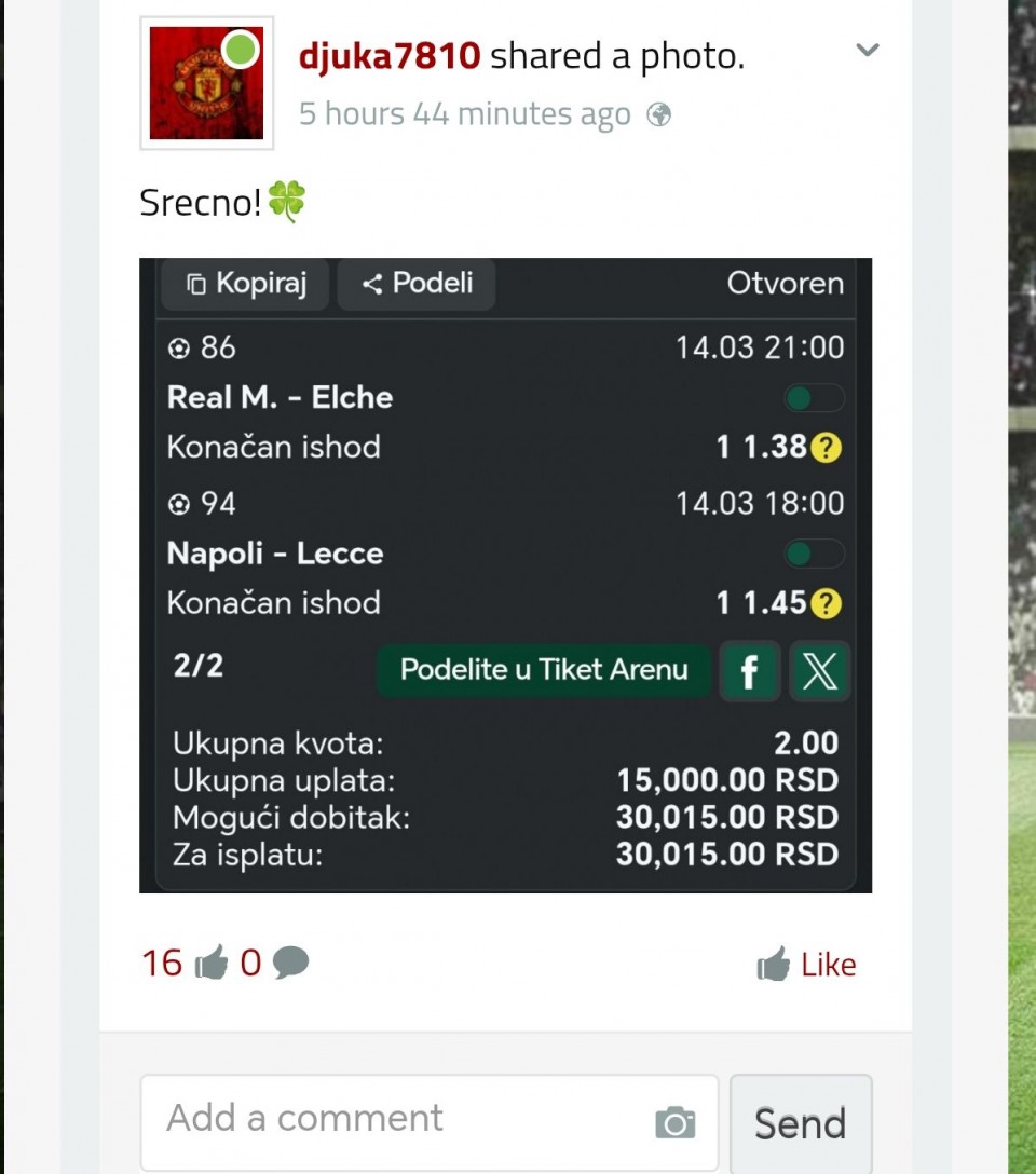 Pre nego sto pocnete sa pricom kako je svaki mec namesten kad eventualno Galata izgubi bodove,napomena da je Basaksehir na 11 uzastopnih meceva poatigao 2+ golova da igraju mozda najbolji fudbal u ligi,da je trener Okan Buruk suspendovan za ovaj...Pre nego sto pocnete sa pricom kako je svaki mec namesten kad eventualno Galata izgubi bodove,napomena da je Basaksehir na 11 uzastopnih meceva poatigao 2+ golova da igraju mozda najbolji fudbal u ligi,da je trener Okan Buruk suspendovan za ovaj mec i da vec u utorak se gostuje Liverpulu pa ce svakako biti rotacija narocito sada kad je Fener izgubio. Tip se sam namece gost daje gol kao najjaci tip i eventualno x2 Show more