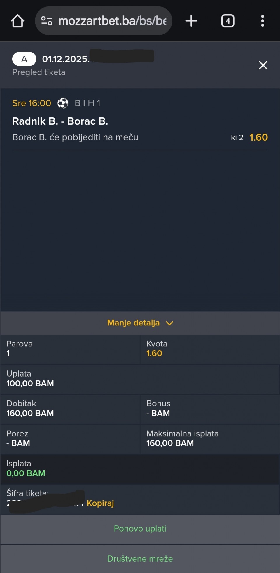 | ljubi baba tiket da prodje (1) | (2/3) | 66.67% | 5.60 | |