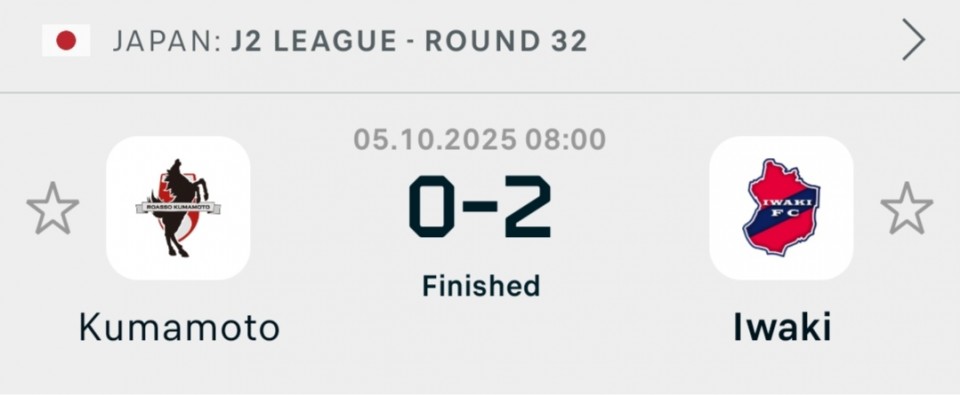 🇯🇵 08:00 Kumamoto - Iwaki 3+ (1.85)/ 4+ (3.25)/ 6+ (14.00)/ 2-1 (40.00)/1-2 (28.00)