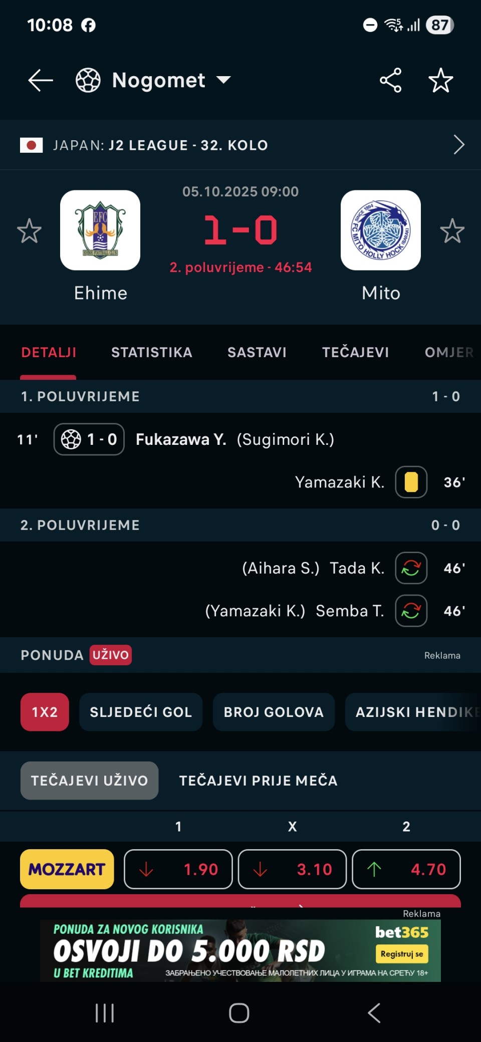 🇯🇵 07:00 Tottori - Osaka GII1+ (1.63)/ 1-2 (28.00)