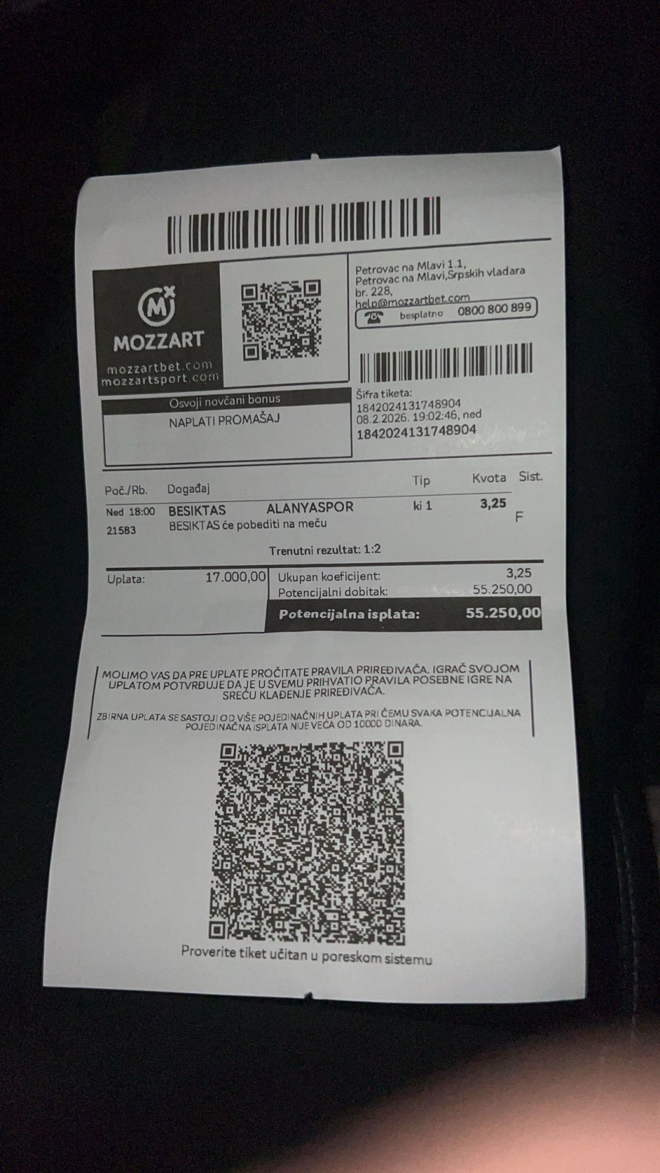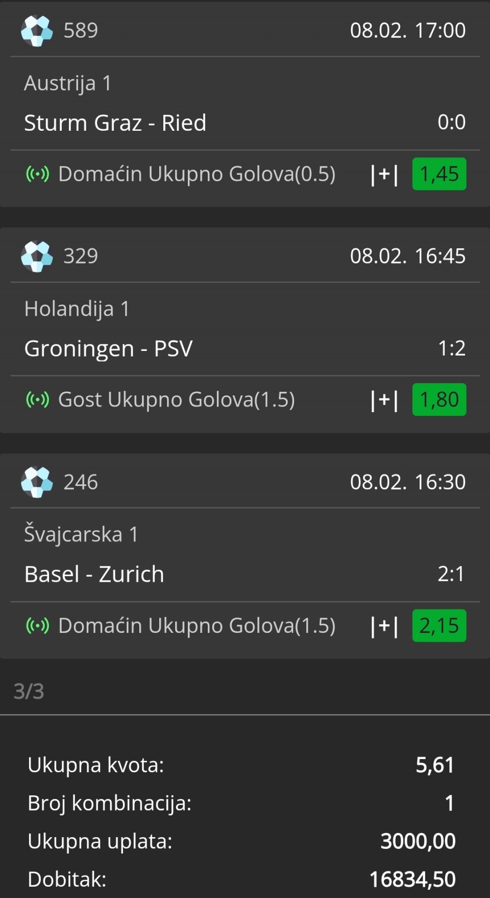3+ kvota 3,88 ulog 390 dinara