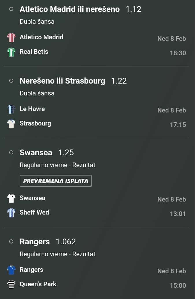 Spanci su mi pomalo sumnjivi, pa cu probati na manji ulog. U nastavku Nemci: