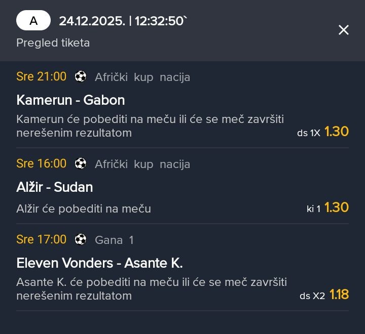 Na poslednjoj utakmici za danas sam se odlucio za ovaj tip iz vise razloga. Iako je istorija i sve fudbalsko na strani Kameruna, ovo prvenstvo igraju bez veoma bitnih igraca. Ocekujem tvrd mec, bez puno sansi, jer na obe strane ocekujem odsustvo realizacije i kvaliteta u poslednjoj fazi napada. Licno sam probao i singl tr 0:0 @ 8.00