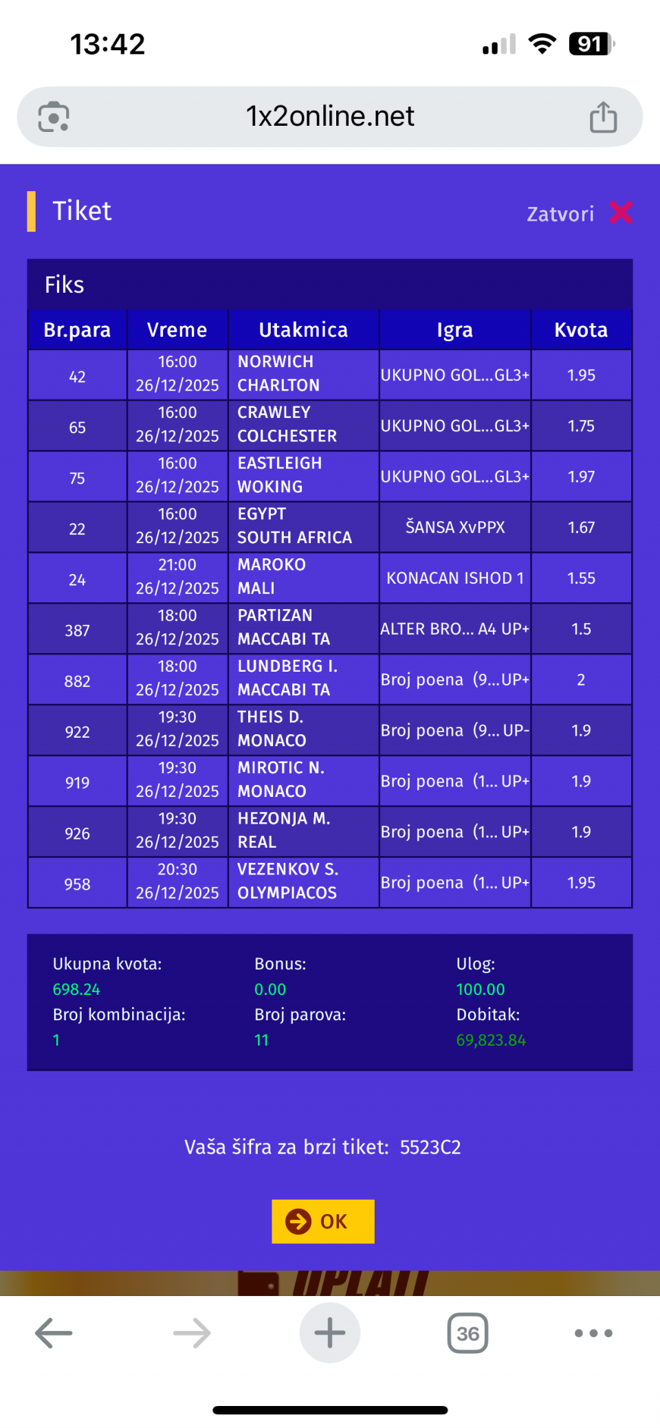 Oborio me je za 130,000 dinara na tiketu gde sam vezao sve predloge i dodao Kupera Flega + 2 hours 5 minutes ago
