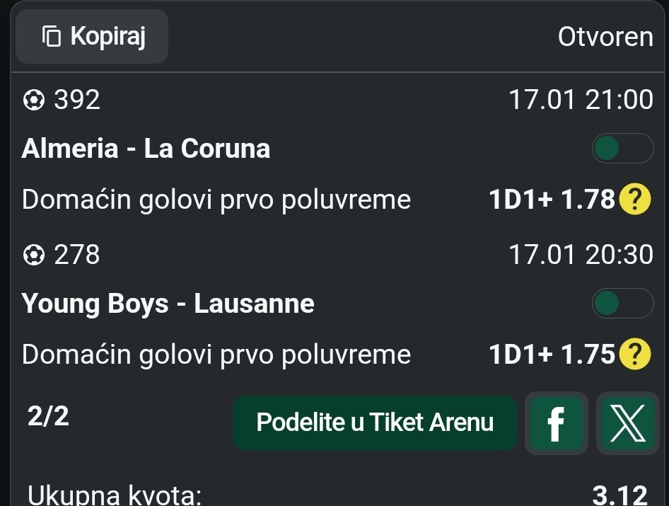 📌Sretno ukoliko neko prepiše, ja sam odigrao sve igrače na jedan tiket, na manji ulog. 🍀