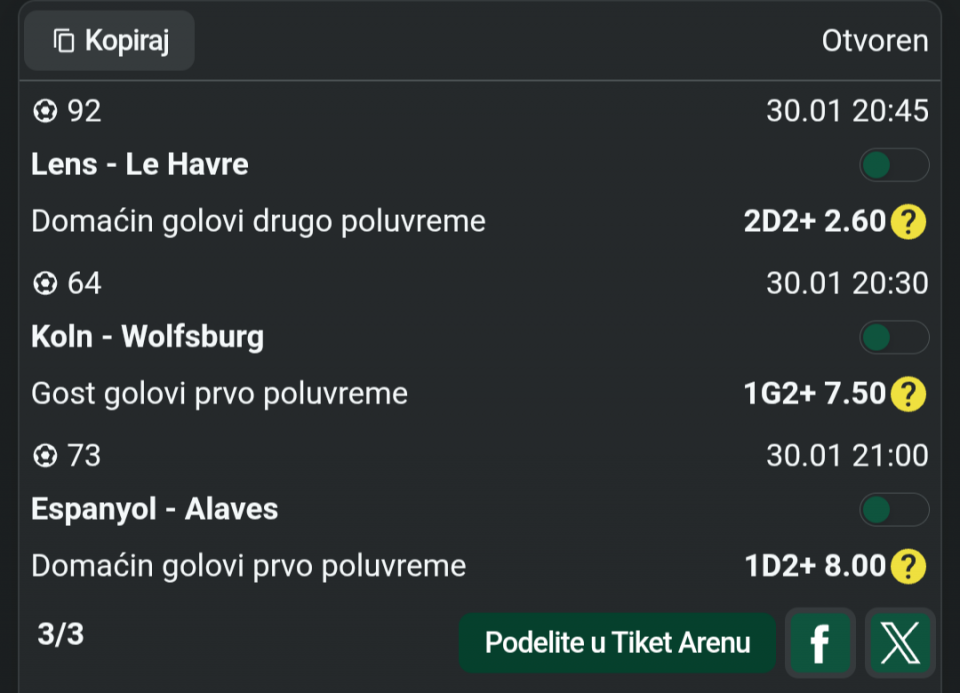 Espanjol 1, 0/2 gola. Lacio gg, (oba tima po dva gola12 kvota admiral) Bristol Siti gg, Gimaraes 1x 2+. Probati na sitno Den Hag : Jong Aze tip 2 , 8,45 kvota na osecaj.