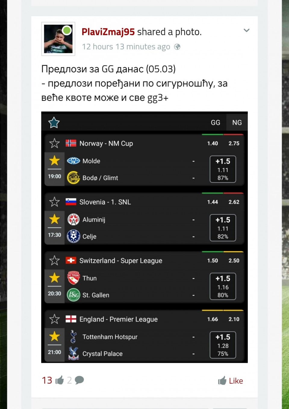 🇳🇴 19:00 Molde - Bodo/Glimt GG&I1+ (1.60) #WIN ✅