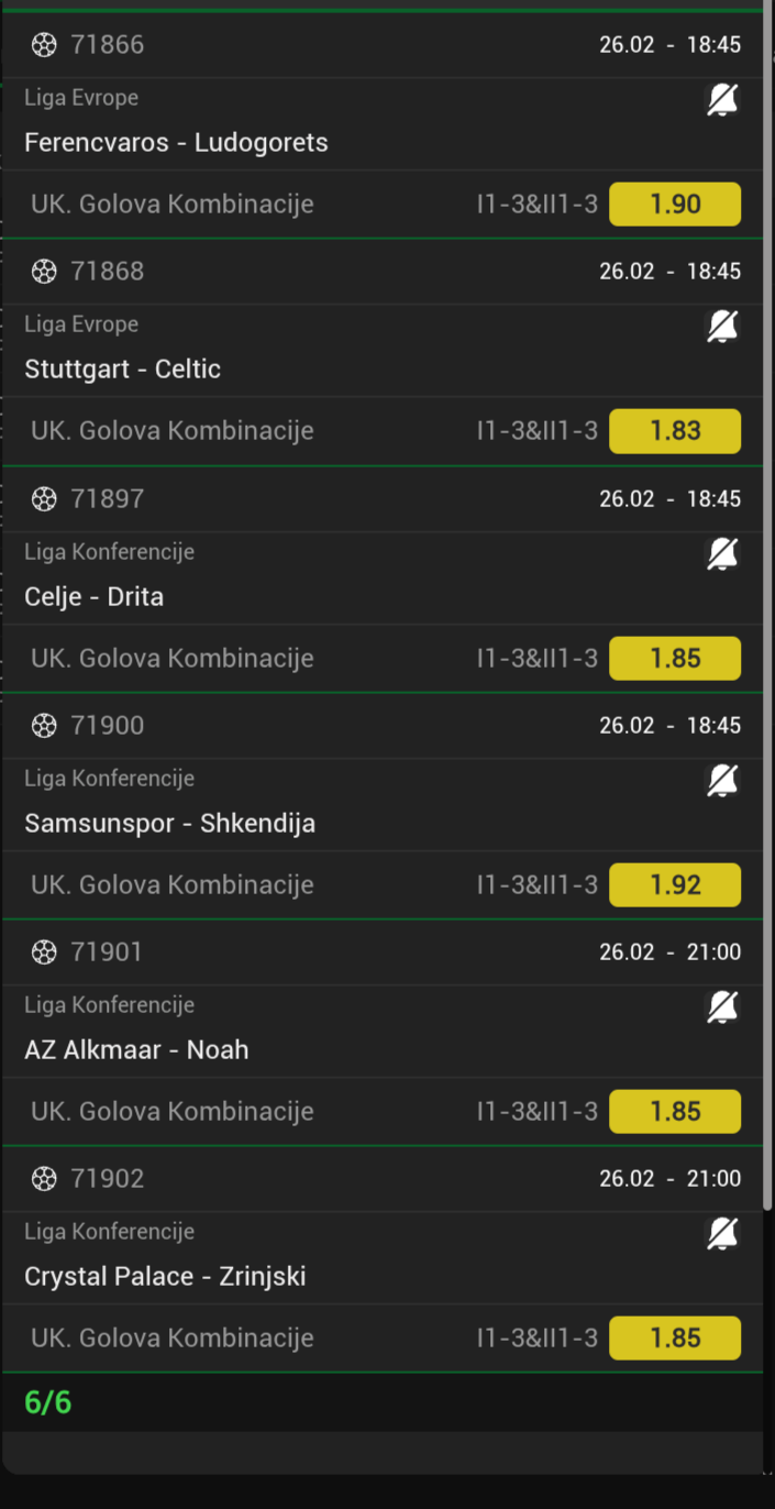 TIP: 6+ kartona @1,88🟨