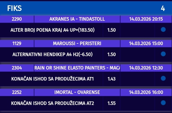 14.03.2026. 21:00h Ceuta - Dep. La Coruna; tip: X; kvota: 3.15; uplata: 2.880,00 din.; isplata: 9.072,00 din.