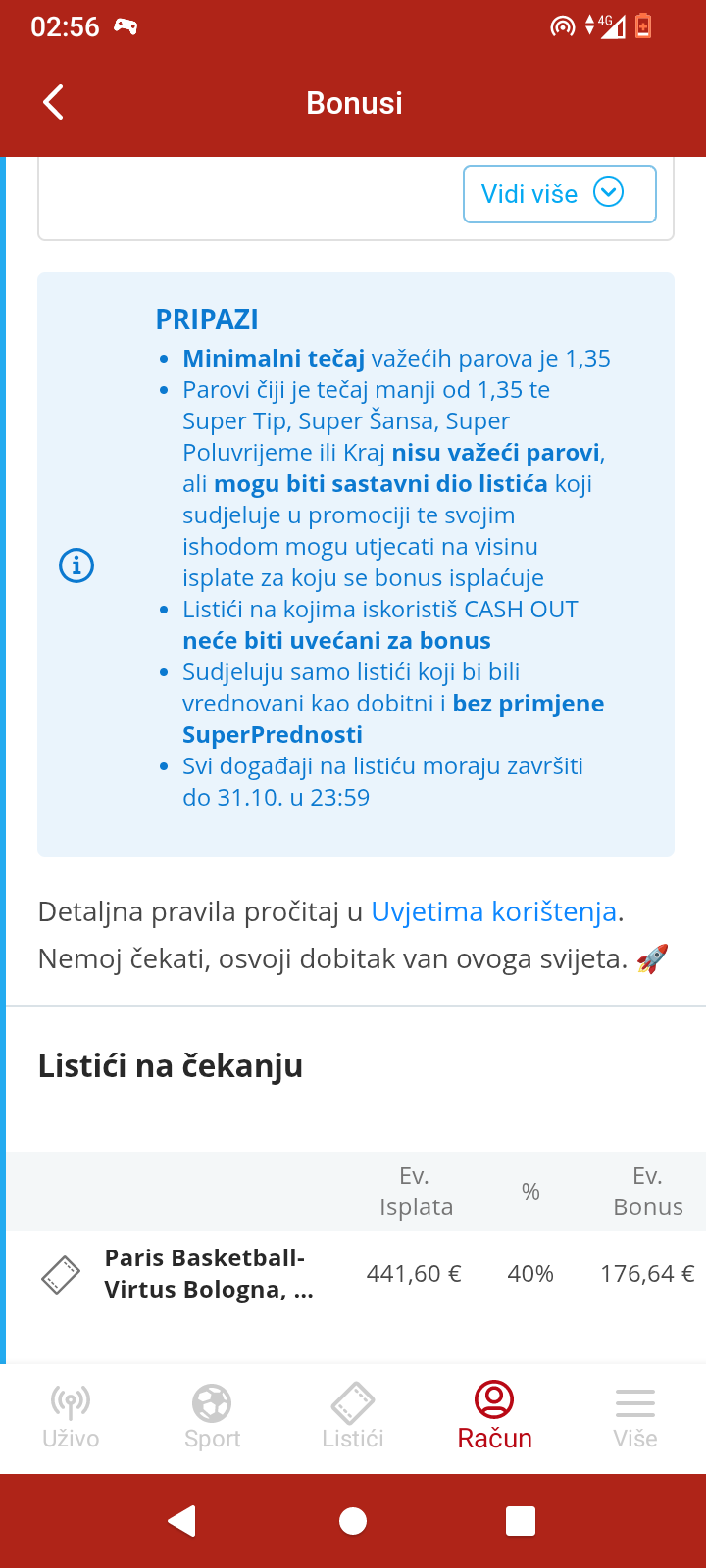 I , za ljude iz hrvatske, koji još nisu upućeni, ima besplatan bet bilder,u super sport,do 31.10, gde se za sitne pare, da nabildat listić... Npr, uz 14 parova, i minimum kofom 1.35, dobitak se diže za 40 posto... Za 2, 3 evra uloga neće se propast