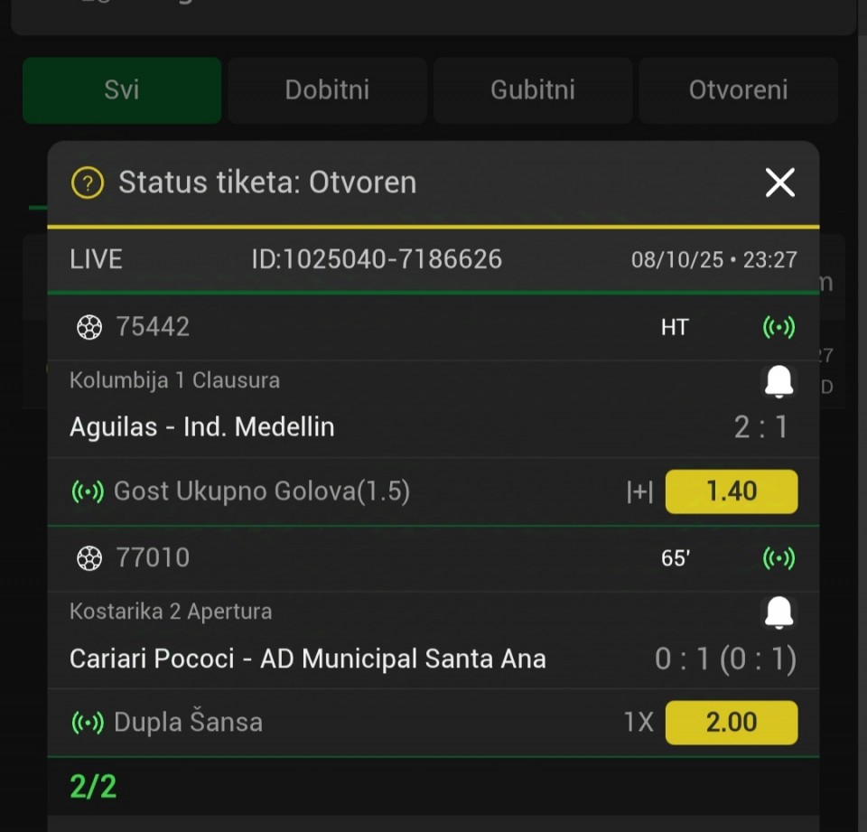 Ovim tiketom započinjem svoju igru kao pre 2 nedelje , ko me malo pratio zna da sam imao 10 pogodaka od 12 odigranih tiketa i podigao sam 87 000. Ostatak tiketa kačiću u komentaru bice vrv jos jedan. Ako neko prati srećno, svim ostalima dosta sreće...Ovim tiketom započinjem svoju igru kao pre 2 nedelje , ko me malo pratio zna da sam imao 10 pogodaka od 12 odigranih tiketa i podigao sam 87 000. Ostatak tiketa kačiću u komentaru bice vrv jos jedan. Ako neko prati srećno, svim ostalima dosta sreće u uzimanju novca od kladionica. Srećno ekipa 😊🍀 Show more