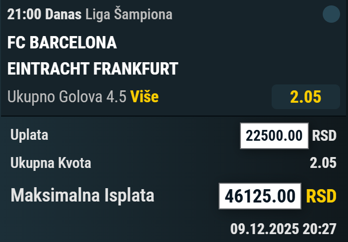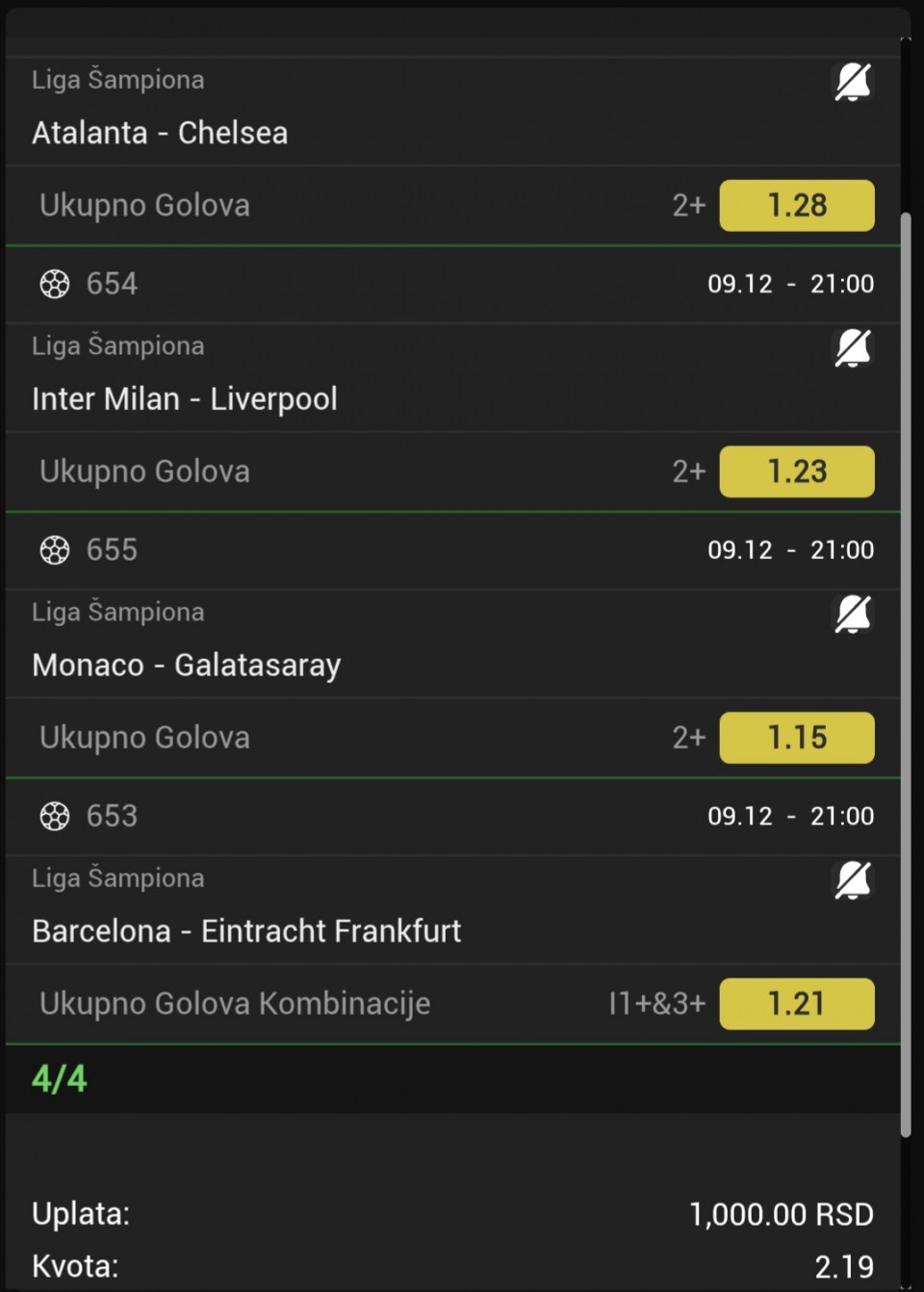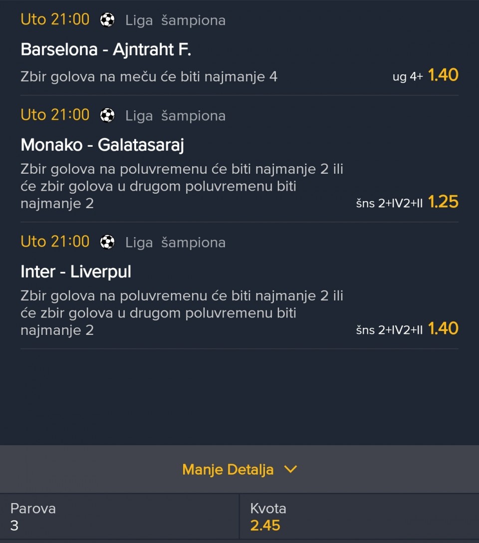 UTORAK LIGA SAMPIONA DUBL glavni tiket