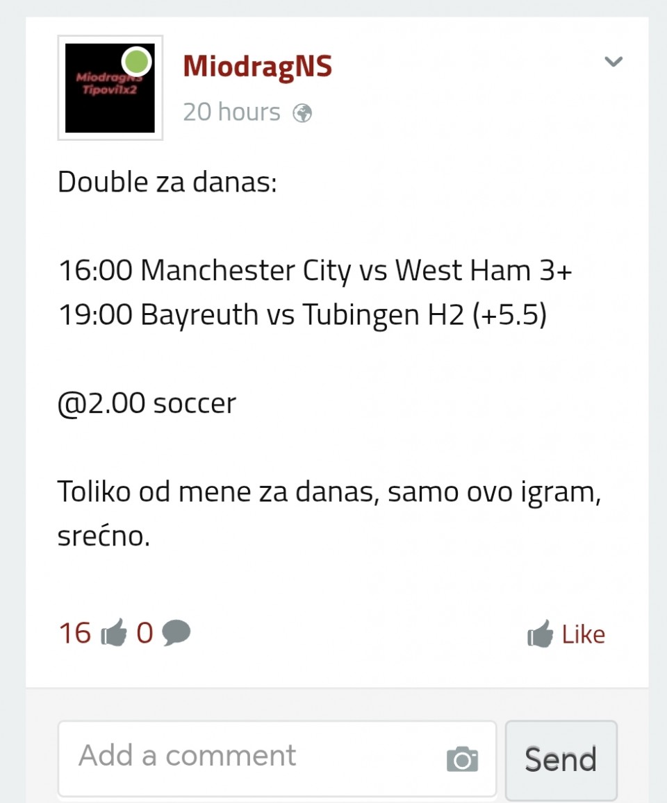 Sve plus poeni, mislim da ce i jedni i drugi bit pola poena od obe ekipe, srecno!