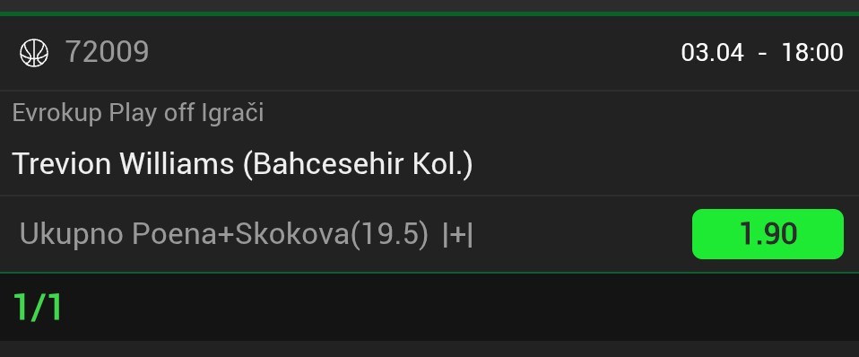 Za večeras sam iskombinovao ovo, vidite ulog i kvotu. Nisam se mnogo zalijetao jer su mi večeras nekako sve tekme škakljive. Postavit ću i drugi rizičniji tiket u komentaru koji se sastoji većinom od igrača koji izlaze iz povreda i traže formu...Za večeras sam iskombinovao ovo, vidite ulog i kvotu. Nisam se mnogo zalijetao jer su mi večeras nekako sve tekme škakljive. Postavit ću i drugi rizičniji tiket u komentaru koji se sastoji većinom od igrača koji izlaze iz povreda i traže formu.