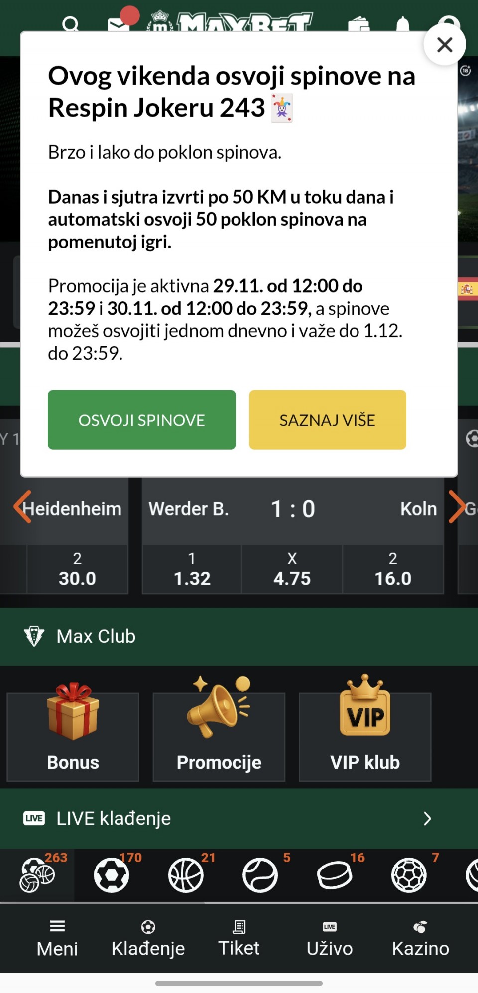 1. M.City - Leeds - 1 i 3+ (1.60) MaxBet