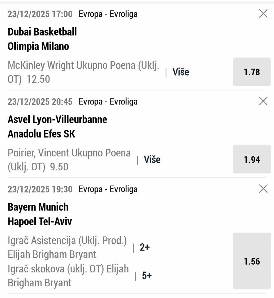 Za danas sam izdvojio jedan EVROLIGA SINGL.