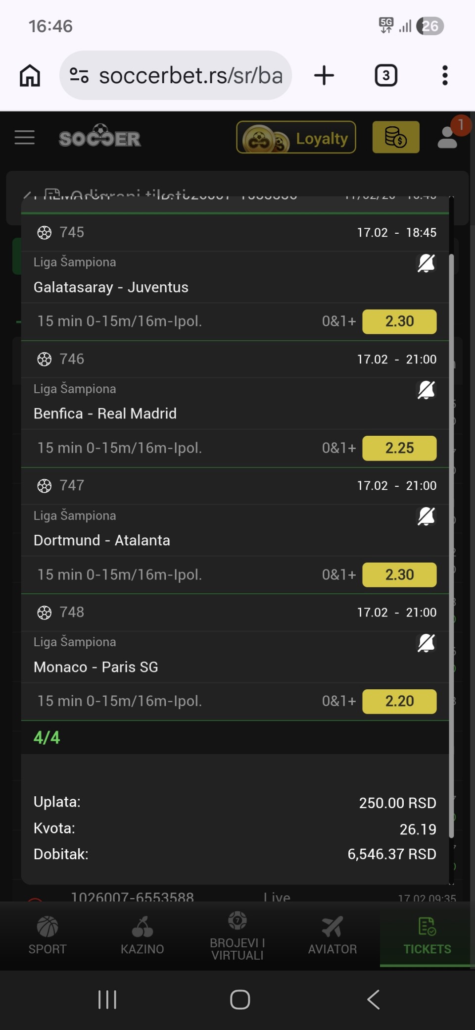 21:00 Borussia D. - Atalanta 1X (1.32)