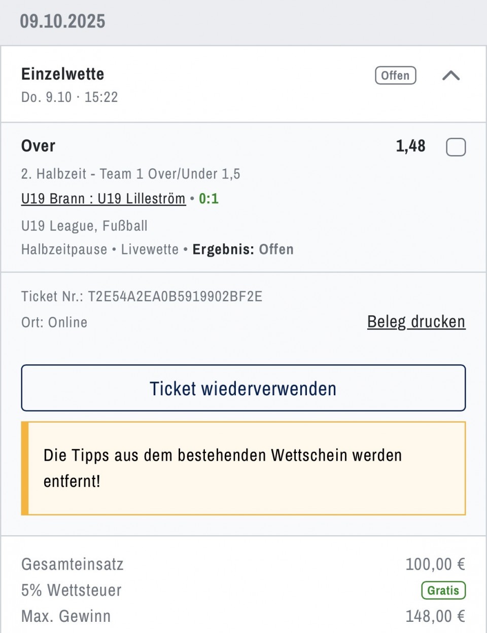 Samo lajv uplata,pobjeda partizana,ako partizan povede 12+ razlike isplaćuju odmah tiket kao dobitan.