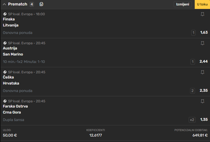 Dal je neko igrao tikete za danas sa ulogom preko 50e?
