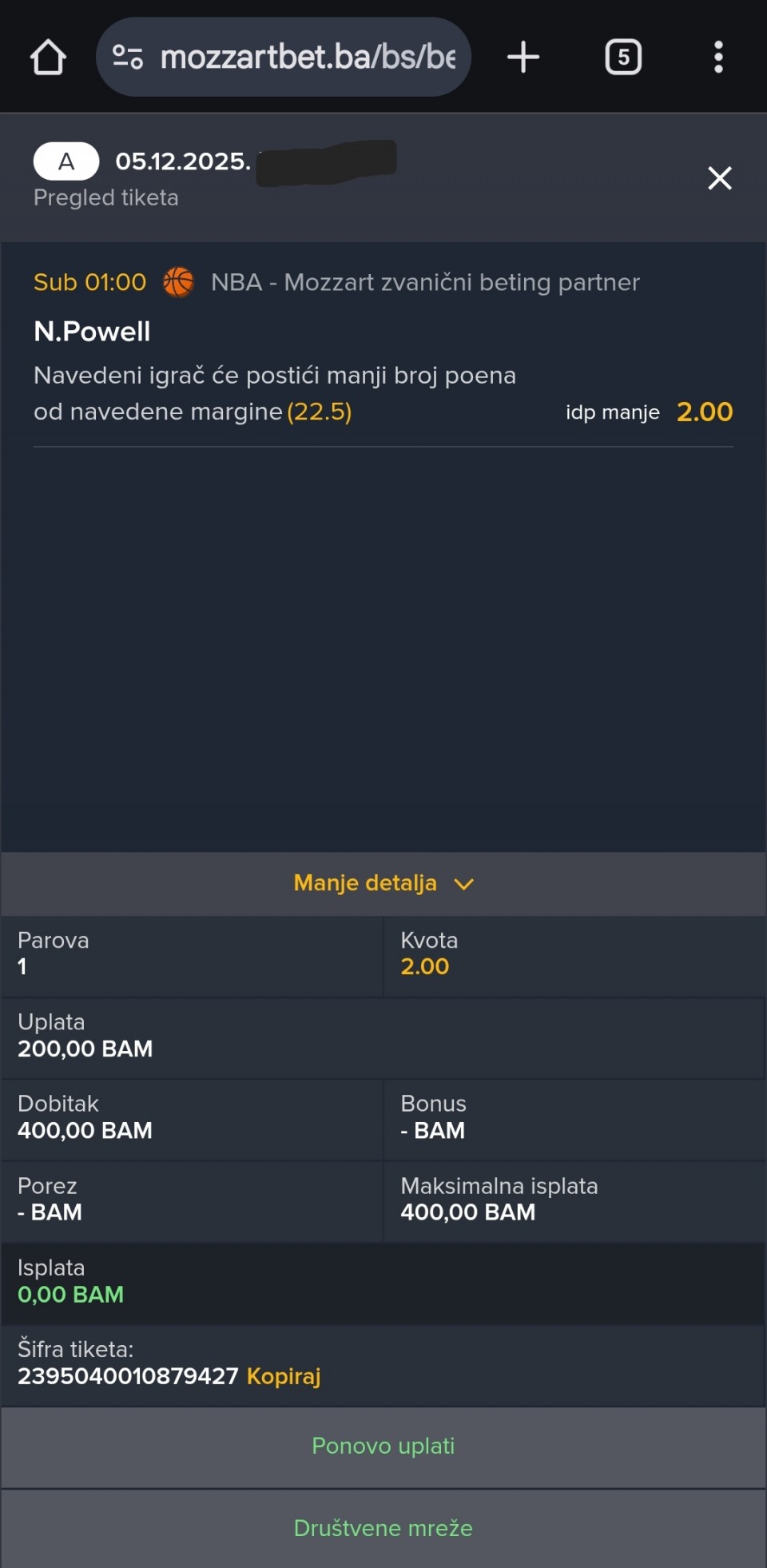 Može li neko da mi pomogne ko igra u premijeru ako uplatim na račun lupam 1000 km i uplatim tiket 100 km i bude dobitan mogu li isplatiti sa računa taj dobitak od dobitniog tiketa ili moram cijeli iznos proigrati ?