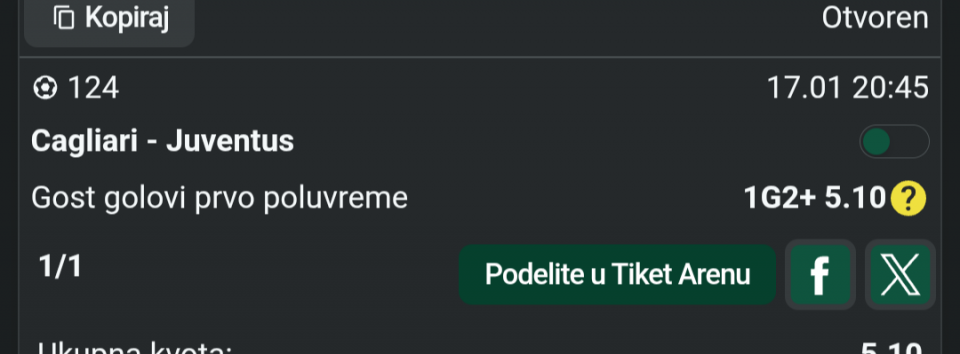 2 tiketa od mene nadam se bar jedan da pozeleni...