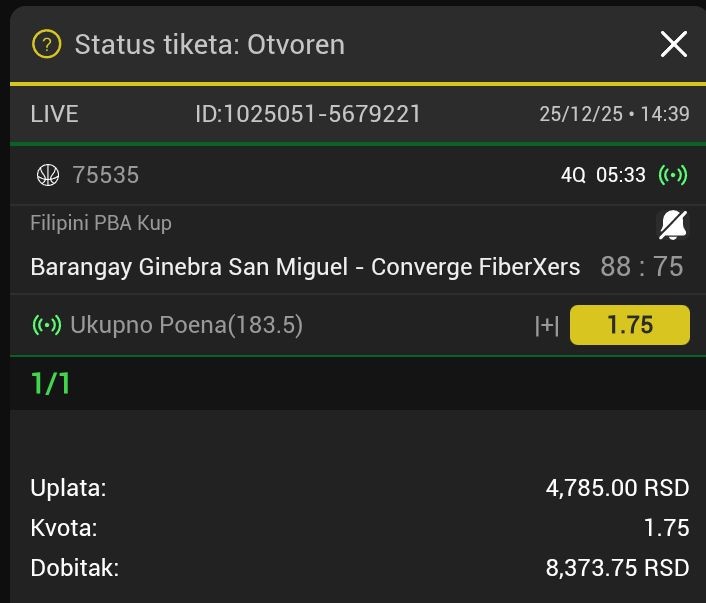 Road Warriors - San Miguel Beermen preko 189,5 koeficijenata 1,7 94-101F.T