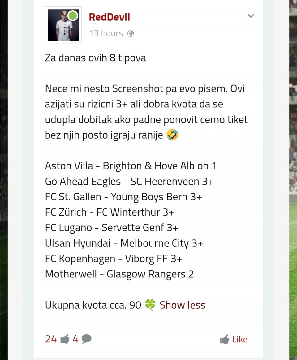 Ova 2 tima se sastaju 2 puta u ovoj sedmici , desavalo se to i ranijih godina i uvijek ko prodje u kupu iducu pusti u ligi.Mislim da ce Velez ic na prolaz u kupu pa ganjamo onda 1 na Siroki u nedjelju,naravno ako nas i iznenade...Velez-Siroki 1 @1.90