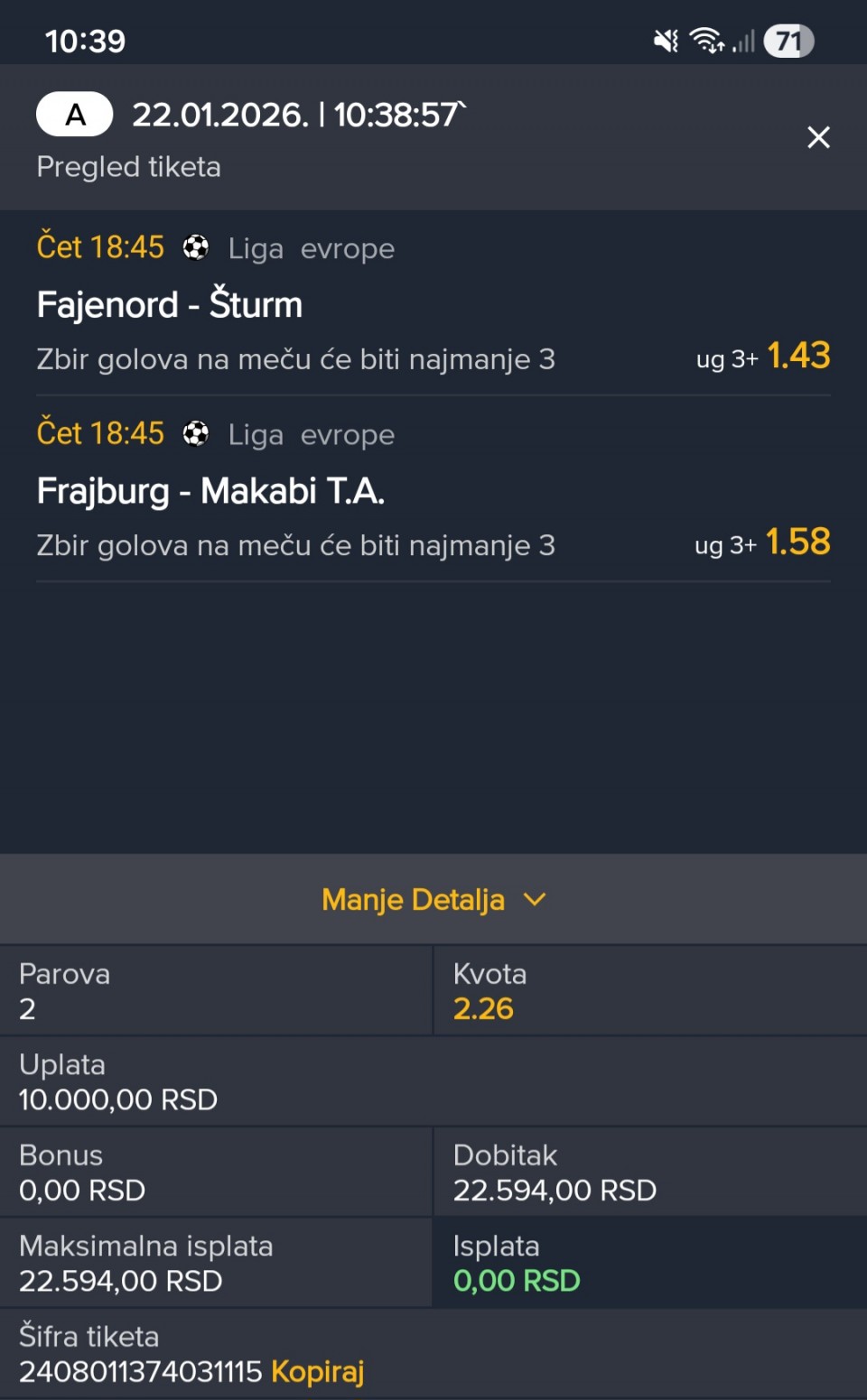 E sad za neki mali ulog na neki tiket probati ili na manji ulog singlirati