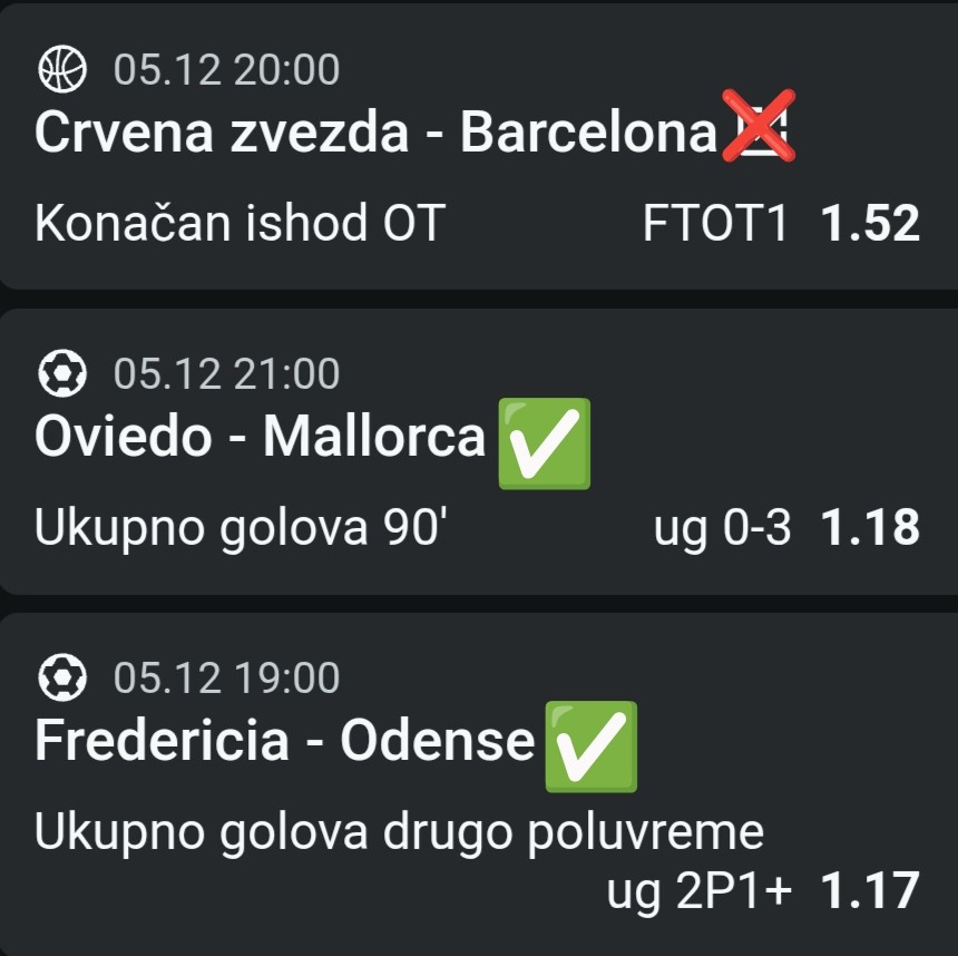 statistiku za predloge ne vodim, biće u komentaru win ✅ pad ❌