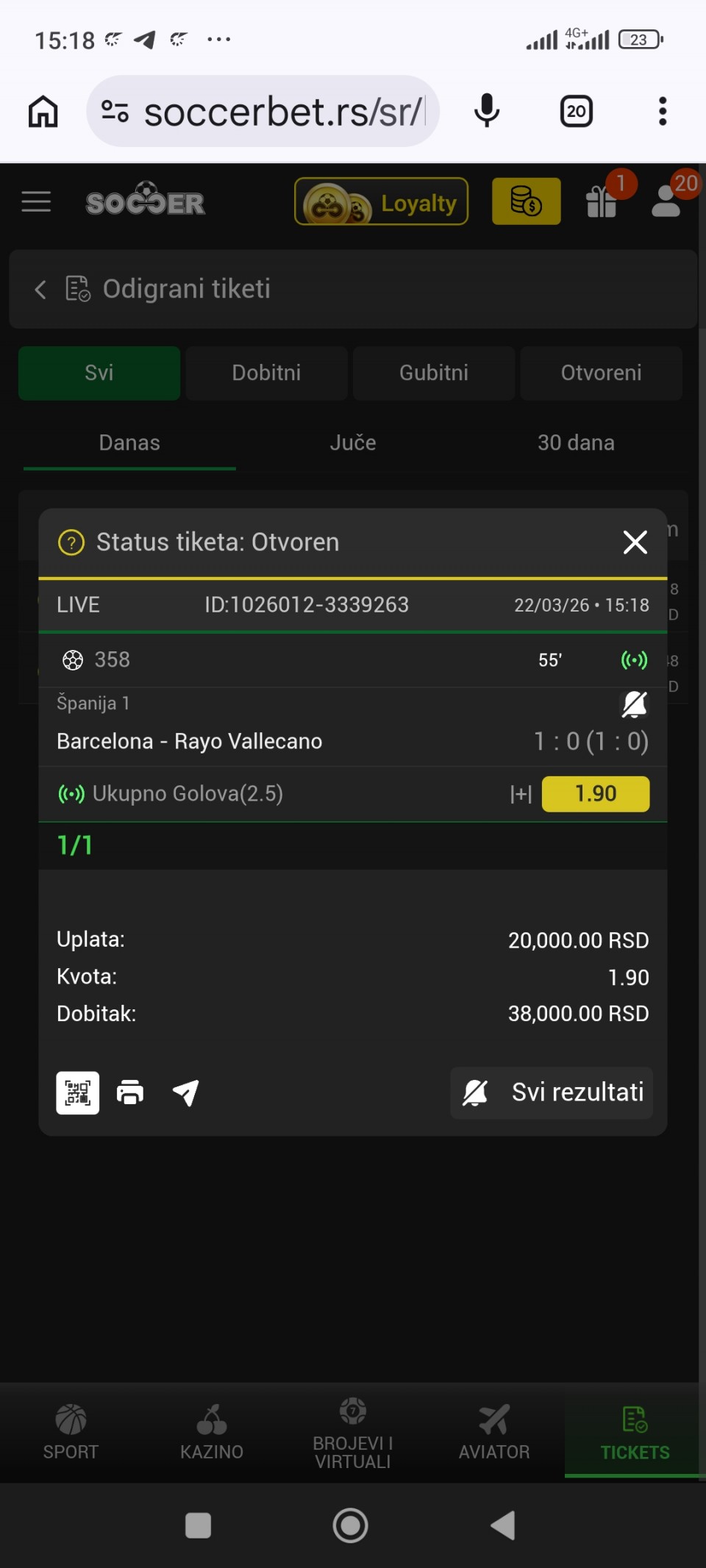 Ah, taj Hačanov samo je potvrdio moje reči. Imao je dva puta brejk prednosti u drugom setu, no džaba. Izgubio je posle u taj brejku i stao tačno na margini, tako da je bilo...Alkaras - Korda 20,5+ 3-6 7-5 4-6 win