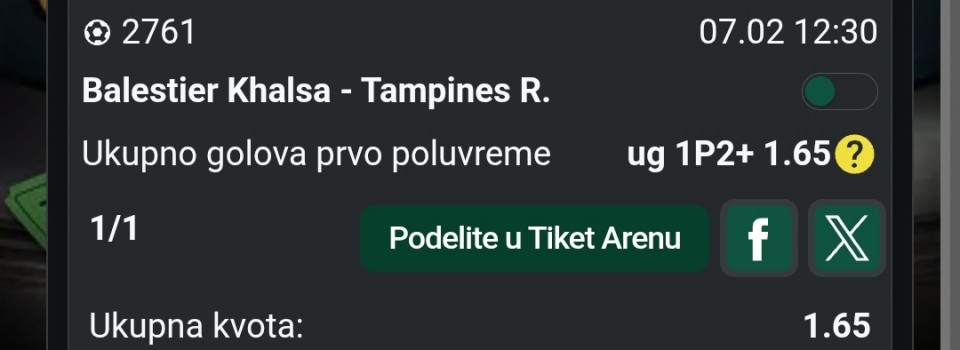 07.02.2026. 20:45h...07.02.2026. 15:00h Mantova - Bari; tip: X; kvota: 3.25; uplata: 180,00 din.; isplata: 585,00 din.